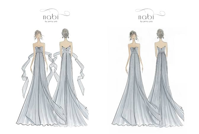 The foregoing trademarks and logos, whether or not they appear with the symbols ® or ™, are trademarks and/or service marks of Jenny Yoo. Trademarks or trade dress include the above names and logos, and other graphics, logos, images, page headers, button icons, scripts, and service names for Jenny Yoo’s products, services, and programs. You may not use any of the "Jenny Yoo" trademarks or trade dress without our prior written permission. Moreover, Jenny Yoo's trademarks, service marks and trade dress may not be used in connection with any product or service (i) that is not authorized by Jenny Yoo in writing; (ii) in any manner that is likely to cause confusion among customers that the source of such product or service is, or is in any way associated with, Jenny Yoo; or (iii) in any manner that disparages or discredits Jenny Yoo. All other trademarks not owned by Jenny Yoo that appear on the Website are the property of their respective owners who may or may not be affiliated with, connected to or sponsored by Jenny Yoo. You may not use any of the "Jenny Yoo" trademarks or trade dress without our prior written permission. By using the Website you are acknowledging that the trademarks, service marks, trade dress and Content on the Website or otherwise belonging to Jenny Yoo are and shall remain, except where owned by a third party, the sole and exclusive property of Jenny Yoo. Nothing on the Website shall be construed as conferring any license or right, whether by implication, estoppel or otherwise, to use any of Jenny Yoo's trademarks, service marks, trade dress or other web-site content. Jenny Yoo is also the owner of the following design patents, pending utility patent applications, and pending trademark applications.
