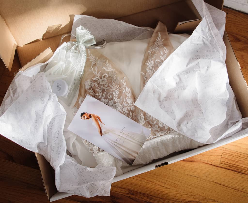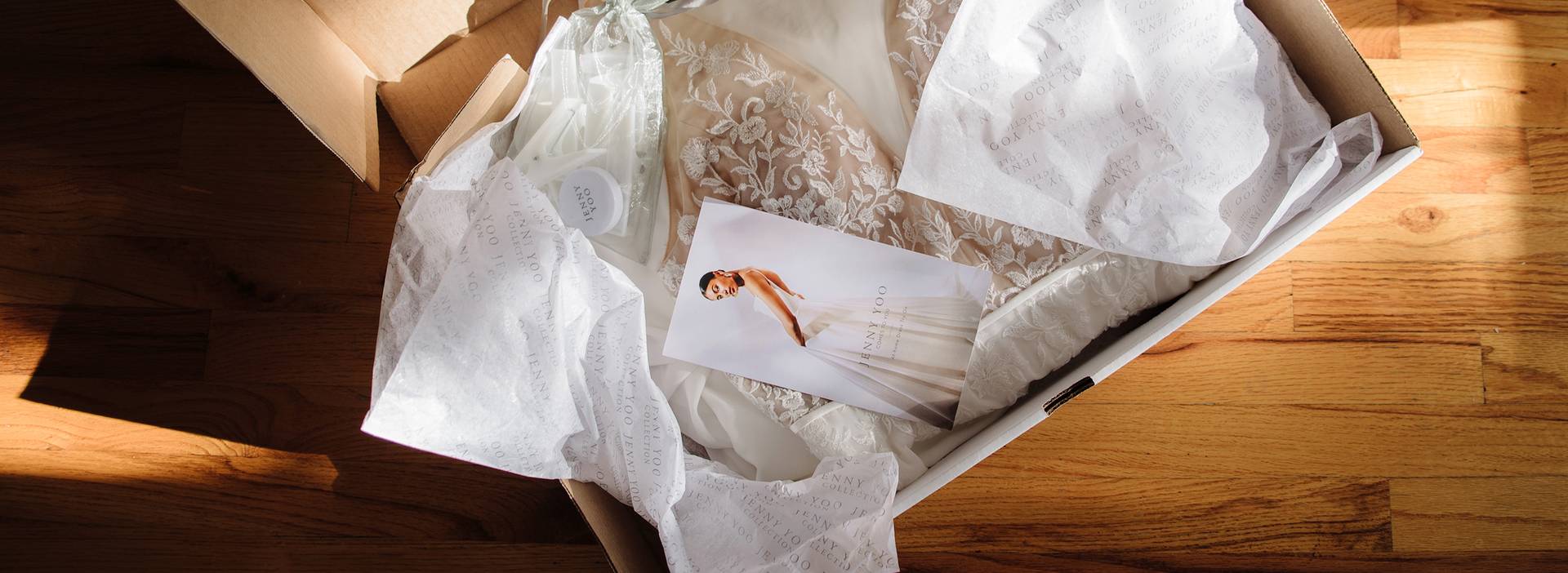At-home Bridal Dress Try OnSchedule your virtual bridal appointment today! The best part? You don't need to be local to the New York or Chicago areas! Let us take some of the stress off wedding planning from home. Video sessions will allow our seasoned stylists to assist you in finding your perfect bridal gown. Once your stylist has answered all your questions and helped you narrow down your top choices, we will ship you samples to try on at home as part of our new Jenny You Comes to You program!