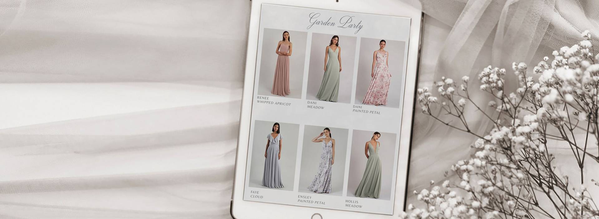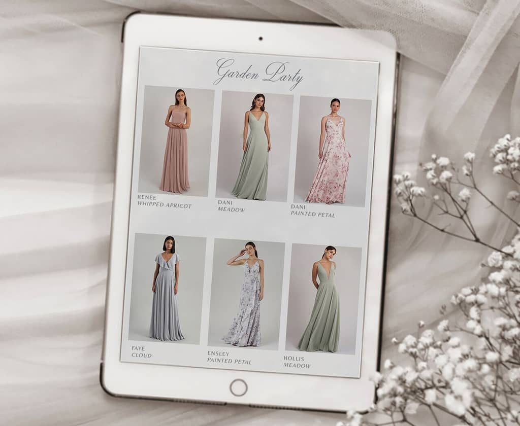with a Jenny Yoo stylistSchedule your virtual appointment today! The best part? You don't need to be local to the New York or Chicago areas! Let us take some of the stress off wedding planning from home. Video sessions will allow our seasoned stylists to assist brides and bridesmaids in how best to select dresses, how to create a style board, and measuring & sizing tips to get the perfect fit. We will guide you on next steps, how to order, and even set you up with a promo code for 3 free swatches!